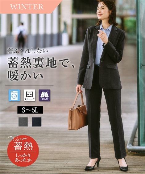 スーツ レディース パンツスーツ 秋冬 洗える ウール調 ロング丈 ビジネススーツ 通勤 オフィス ニッセン s0