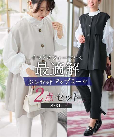 スーツ レディース パンツスーツ パンツ ジレ セットアップ テーパードパンツ 洗える ニッセン s0