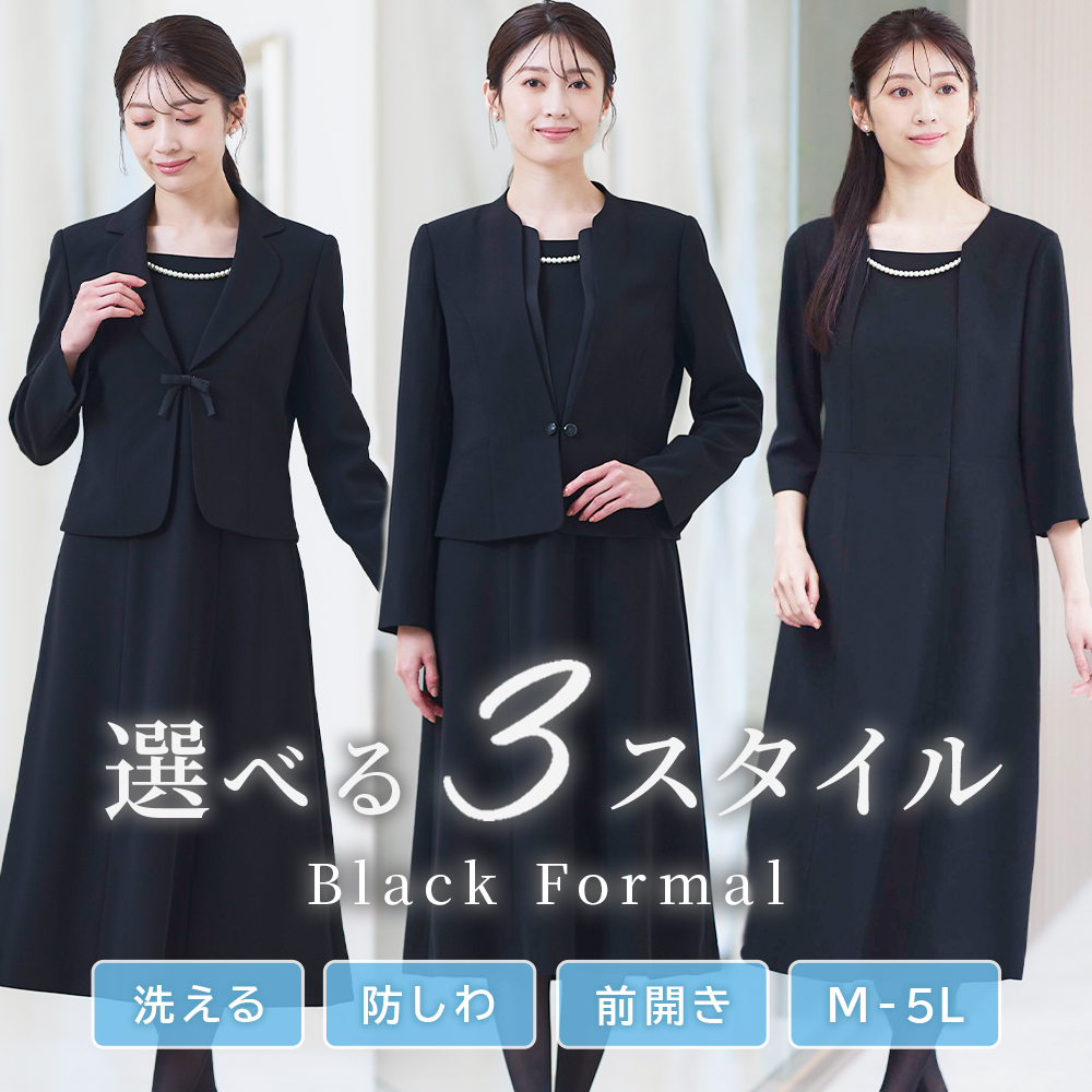 | ※商品は複数サイトで共有しており、システムで在庫調整を行っておりますが、ズレが生じ欠品となりキャンセルとなる場合がございます。その際は、別途メールにてご案内させて頂きます。 黒(Aタイプ) ![]() 黒(Bタイプ) ![]() 黒(Cタイプ) ![]() ![]() ![]() ![]() コメント 〜品のある格式高い装いを大切にする方へ〜 礼節に沿った気品のある姿を叶えてくれる王道ブラックフォーマルが登場! 3タイプの中から、お好みのジャケットとワンピースをお選びいただけます。 冠婚葬祭のマナーに則ったふさわしいブラックフォーマルアンサンブルです。 一年を通してオールシーズン着用いただける、大人の気品と快適さを両立したフォーマルスーツ(喪服・礼服)です。 ジャケットは、ノーカラーとテーラードの2デザインからお選びいただけます。 3タイプ共通のワンピースは、前開き仕様で取り外し可能なパール調ネックレスが付属するします。 ■デザイン 【Aタイプ】テーラードジャケット+ワンピース 取り外し可能なリボンと角の取れた柔らかいシルエットが女性らしい上品な装いに。 【Bタイプ】ノーカラージャケット+ワンピース すっきりとした衿元で高級感溢れる装いを。 ジャケット両胸内側には、袱紗が入る深めのポケットを設けております。 前ホック仕様で装飾を減らし、より静かで落ち着いた印象をもたらすデザインです。 袖スリット入りで、お手洗いや温度調節にも最適です。 【Cタイプ】ワンピース単体(A,Bのワンピースと同様) ワンピースは前開き仕様で着脱も簡単。ヘアセットやメイクを崩さずにスムーズに着脱いただけます。 また授乳期の参列にも安心してご着用いただけます。 身頃には軽やかな生地を使用し、動くたびに揺れる美しいシルエットをつくります。 取り外し可能なパール調ネックレス付きで、上品な大人の装いに格上げしてくれます。 両脇の腰辺りには、数珠やハンカチはもちろん、スマートフォンも入る、しっかり使えるポケット付き。 ■こだわりポイント 洗濯機で洗える(ネット使用)ウォッシャブル仕様で、いつでもお手軽に清潔な状態を保てます。 防しわ生地を採用しており、長時間の着用や持ち運びにも安心。 深みのある漆黒のフォーマル生地を使用し、格式ある式典にもふさわしい装いに。 ワンピースは静電気防止シール付きで、着脱時の纏わりつきを防ぎます。 ■体型カバーポイント ジャケットはヒップまで覆える丈感で、美しい後ろ姿と体形カバーを実現します。 ワンピースはふらしデザインで、ウエスト周りをふんわりカモフラージュ。 気になる二の腕やウエスト、膝見えをしっかりカバーする安心丈。 ■対応着用シーン 【お通夜】【葬儀】【告別式】【結婚式】【披露宴】【お食事会】【お呼ばれ】【参観日】【学校行事】など幅広いシーンで着用いただけます。 葬式・通夜・告別式などの葬儀はもちろん、七五三やお宮参り・卒園式・卒業式・入園式・入学式などセレモニースーツとしてフォーマルなシーンでの着用もお薦めです。 幅広いシーンや時期を通して、長くお使いいただけるよう企画しております。 状況に応じて機能性インナーやアウターを併用いただくことでオールシーズンでの着用を想定しております。 ※注意コメント お届けの輸送形態や梱包状況により、商品にしわが付く場合がございます。 気になる箇所にスチームアイロンを軽く当てることで取り除くことができます。 |
