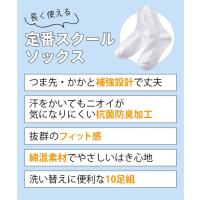 コメント累計販売枚数313万足突破 ニッセンオリジナル 抗菌防臭 しっかり丈夫な無地クルー丈スクールソックス10足組 ●丈夫なヒミツは糸の本数!● 通常のソックスの1.3倍の特別な編立てをしています。 丈夫さに自信あり! ~その他6つのポイント~ ■抗菌防臭加工 毎日汗をかいて活発に活動してもニオイが気になりにくいです ■つま先かかと補強設計 足の負荷かかかりやすいので補強編みをしています。 ■抜群のフィット感 伸縮性があり、長時間はいても快適なはき心地です。 足口はズレにくいリブ仕様です。 ■さらりとした綿混素材 綿を使った靴下ならではのやさしいはき心地です。 通気性がよく、普段使いにもぴったりです。 ■同色10足組 洗い替えや長期の旅行や合宿にも対応できます。 ■成長に合わせて選べる4サイズ 足の大きさが16cmから26cmまで対応できるので、幼児のお子様から中高生のお子様までご着用いただけます。 一度気にいっていただけると長くご着用いただけます。 同シリーズのハイソックスも取り扱っております。