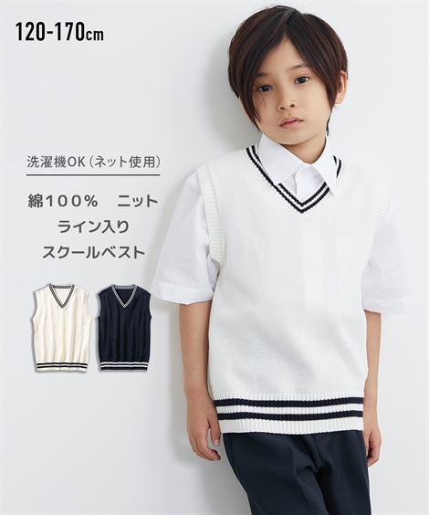 制服 キッズ 綿100% ライン入り スクール ベスト 子供服 男の子 女の子 ジュニア服 通園 通学 身長170cm ニッセン nissen