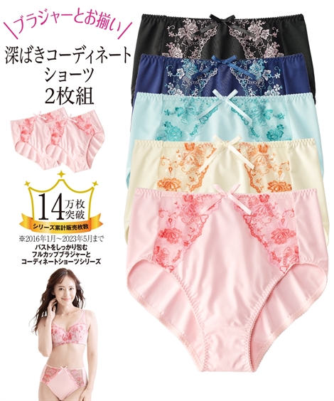 【コメント】「バストをしっかり包むフルカップブラジャー」のペアショーツ。タテヨコに伸びるストレッチ素材で快適フィット。安心の深ばき丈で、洗い替えに便利な2枚組です。