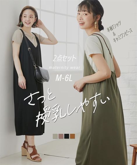 【コメント】着回し力抜群!キャミソールワンピースと半袖Tシャツのお得な2点セットです。Tシャツは、授乳しやすいと好評の定番マ