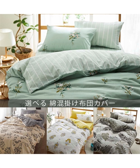 寝具 掛け布団カバー 綿混 プリント 白モダンリーフ柄 セミダブル ニッセン nissen