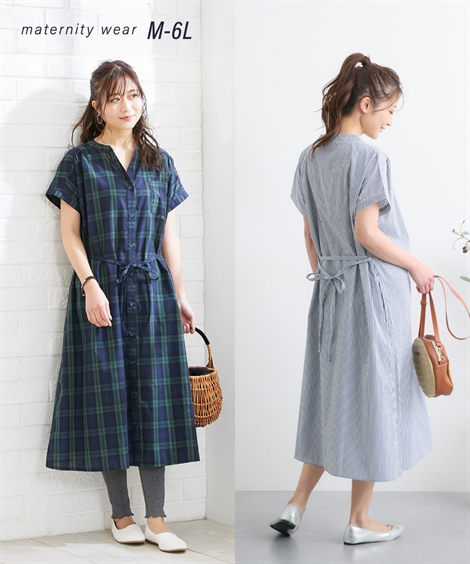 【素材】品質=身生地:ポリエステル55%・綿45%・またはポリエステル65%・綿35%(織物) 前ボタン開き 授乳可能 ポケット:両脇 柄の出方が多少異なる場合があります。