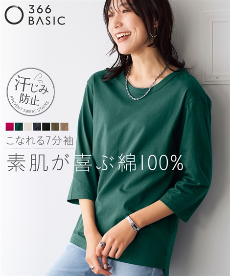 【素材】品質=綿100%(リブ部除く) 両脇スリット 着丈前後差約3cm 汗染み防止加工を施しておりますが完全に防止するものではありません。また染み具合は本体の色によって異なります。