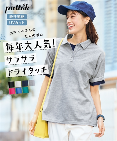 ポロシャツ 大きいサイズ レディース 吸汗速乾 UVカットゆるシルエット 5分袖 夏 L/LL/3L/4L/5L ニッセン nissen
