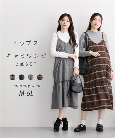 ワンピース マタニティ ママ 産前 産後 授乳服 2点セット ビエラキャミ + 長袖 トップス 3L/4L ニッセン nissen