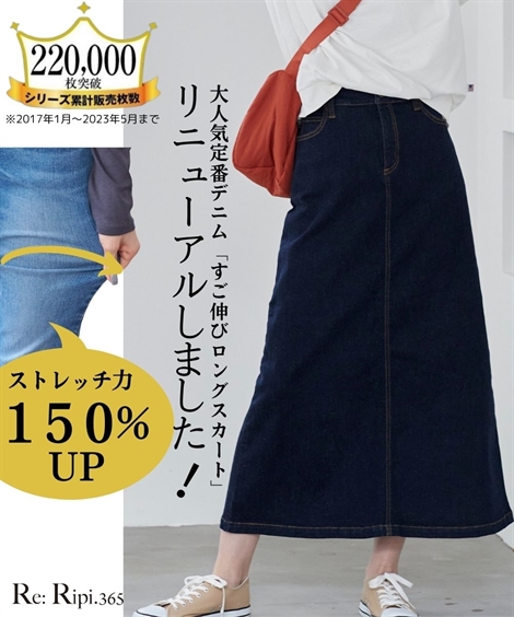 スカート ロング 大きいサイズ レディース すごのび ストレッチ デニム ゆったり ヒップ 6L/8L/10L ニッセン nissen