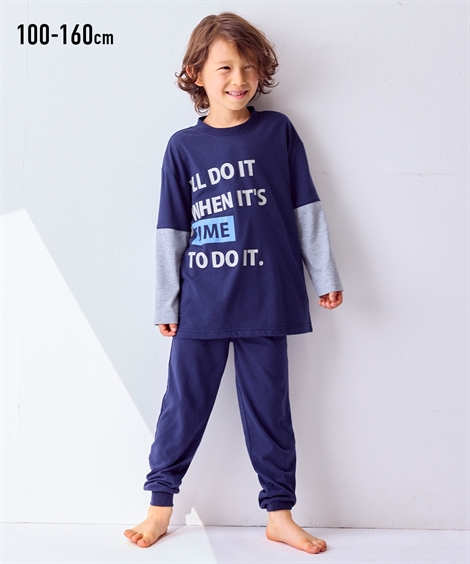 【コメント】大きなロゴプリントと切り替えでカジュアル度UP 。アウターっぽい着心地快適なルームウェア ■デザイン 大きなロゴプリントと重ね着風デザインがおしゃれ アウターっぽいので宿泊学習などのお泊りにもおすすめ 足口リブとゆるっとシルエットが今