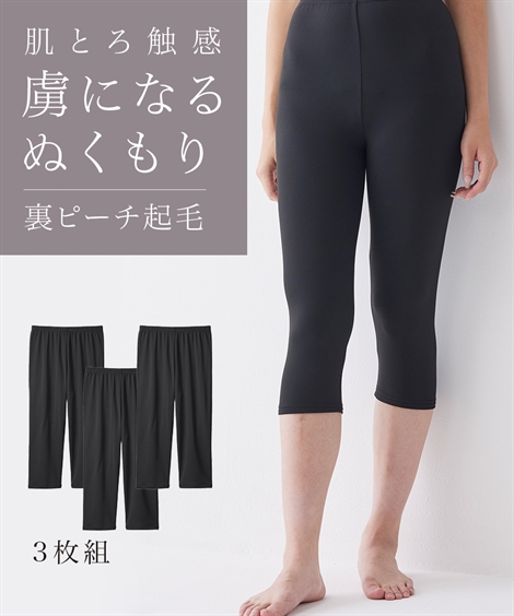 【コメント】裏ピーチ起毛 7分丈レギンス3枚組肌とろ触感虜になるぬくもり【肌にあたる面は繊細なピーチ起毛で柔らかくあたたかい肌触り】ピーチ起毛は桃の表面のようにする加工で、柔らかい風合いと細やかな起毛感で熱が逃げにくいのが特徴です。【タテヨコ2wayストレッチで動きやすい】タテヨコにやさしく伸びるストレッチ素材で、着たり脱いだりもらくらくです。【ウエスト総ゴムでらくちん】ウエストゴムは身生地でくるんで肌に直接たらないから、やさしい肌あたり。【安心の深ばき丈】股上深めでヒップをすっ