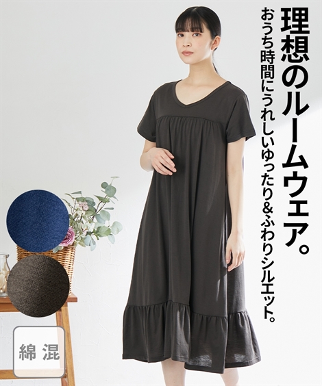 パジャマ 大きいサイズ レディース 綿混 半袖 ルーム ワンピース 夏 ルームウェア 部屋着 女性 | LL〜3L | ニッセン nissen