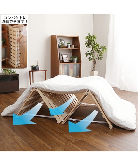 通気性バツグンの四つ折りのひのきすのこベッド。室内干しもできるので、忙しい朝でもお天気の悪い日でも大活躍します。すのこは厚み(約)2.5cmとしっかり頑丈設計です。収納時は厚み(約)9.7cmになり、着脱式テープで止めるだけの簡単仕様です。■メーカーからの直送商品となります。■この商品は沖縄・離島・一部地域には配達できません。■この商品は代金引換払いはご利用頂けません。