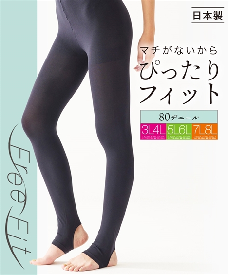 抗菌防臭 伸びがいい80デニールトレンカ(Free Fit) マチがないから快適フィット! 股ずれによる破れ、サイズが小さくて生地が透けてしまう、たるんでくる足辺りの生地など、 皆様の声を元に日本人技術者が履き心地を追及して作ったタイツです。毎日に「PLUS」感動フィット 独自設計で「PLUS SIZEの快適さ」を徹底的に考えました。 〜POINT〜 1,お腹周り伸び伸びフィット マチがなくても驚きの伸縮性でずり下がりにくく、ゆったり快適 2,楽ちんキレイに履ける 部分に合わせて均一に生地が伸び、太もも部も透けにくい仕様 3,膝・足首すっきり どんな脚にもフィットし、たるみを防止する細やかな設計