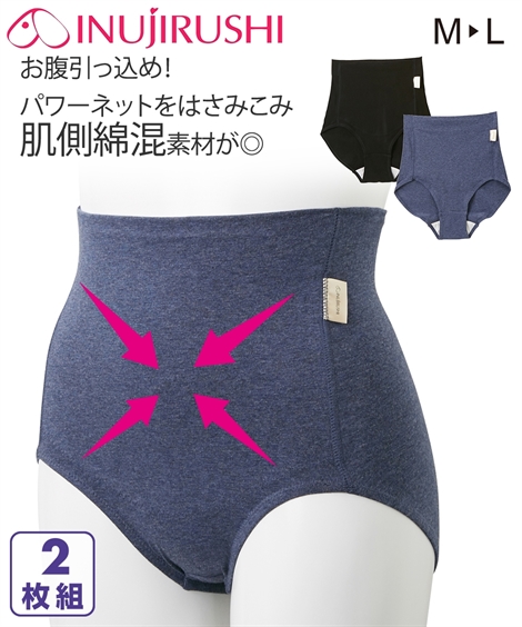犬印本舗 ママ 産後 産後ママのお腹ひっこめ 綿混 ストレッチ ショーツ 2枚組 肌着 インナー M/L ニッセン nissen