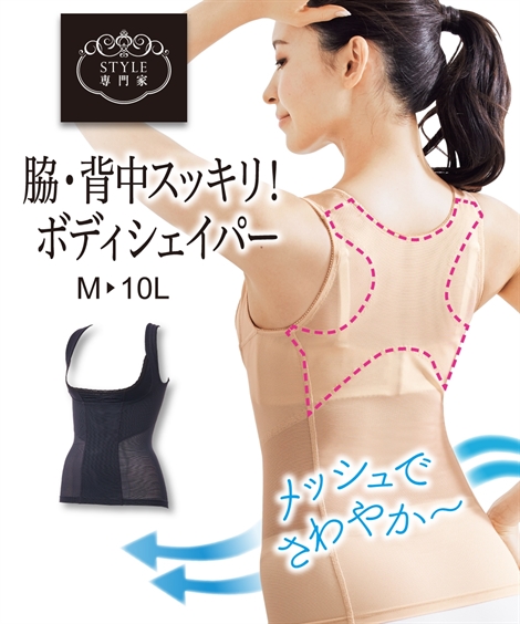 コメントお手持ちのブラと合わせられる人気のボディシェイパーに夏タイプが登場!爽やかな透け感がありながらパワーのあるネット素材を使用し、細見えさせながらパワーネット裏打でバストUPもサポート。さらに背中の衿ぐりを広めに改良。アウターからのチラ見えも防止します。お揃いのショートガードルと組み合わせると前面のラインがつながってよりキレイなシルエットに。