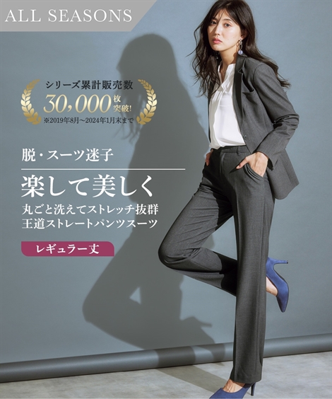 スーツ パンツ レディース 新設計パターン 洗える タテヨコ ストレッチ テーラード ジャケット + ストレート 4L/5L/6L ニッセン nissen