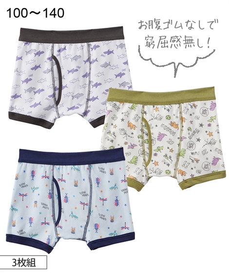 ボクサーパンツ 男の子 キッズ お腹苦しくない 総柄 前開き 3枚組 子供服 身長100/110/120/130/140cm ニッセン nissen