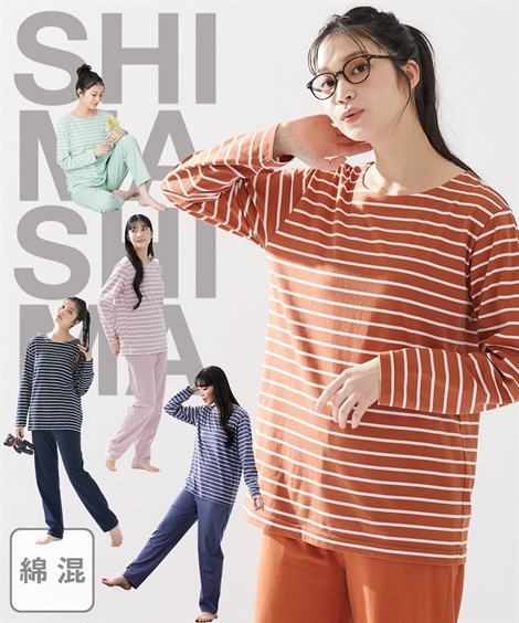 サラッとした綿混素材のルームウェア。定番のボーダーで着用しやすい。お得感ある価格がうれしい!