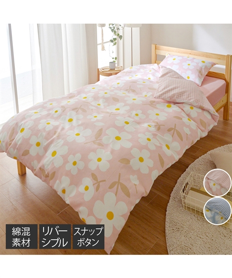 【コメント】素敵なお部屋を演出する綿混素材のフレンチカントリーのカバー。裏と表が柄の異なるリバーシブルなので、気分に合わせてお部屋の雰囲気を変更できます。お布団とワンタッチで固定できるスナップボタン付!お洗濯しても乾きやすく、シワになりにくいポリエステル素材と綿(コットン)の吸水性や優しい肌ざわりの両方の良さをハイブリッドした素材なので快適でお手入れがラク。・全開ファスナー:長辺側いっぱいに開