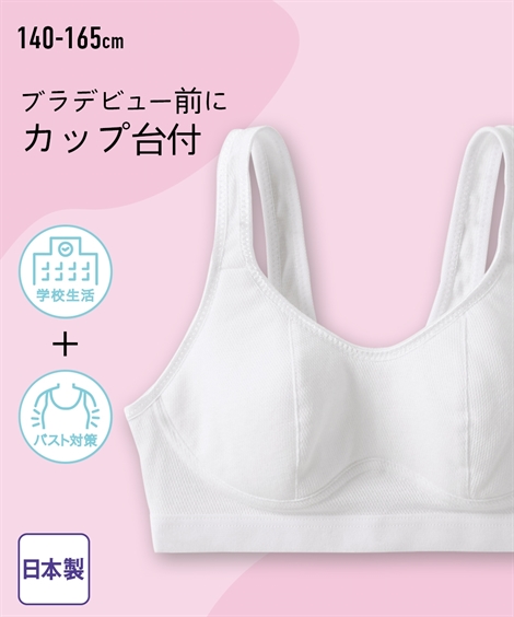 【コメント】ブラジャーデビュー前におすすめのハーフトップ。 真っ白だから制服や体操服の下にもおすすめのハーフトップです。 〜こんなお子様におすすめ〜 ・バストが膨らんできて運動時に気になる。 ・ワイヤーがあるブラジャーにまだ抵抗がある。 <特徴> ■カップ台付 アンダーラインに沿ってバストを下からやさしくサポートしてくれます。 ノンワイヤ