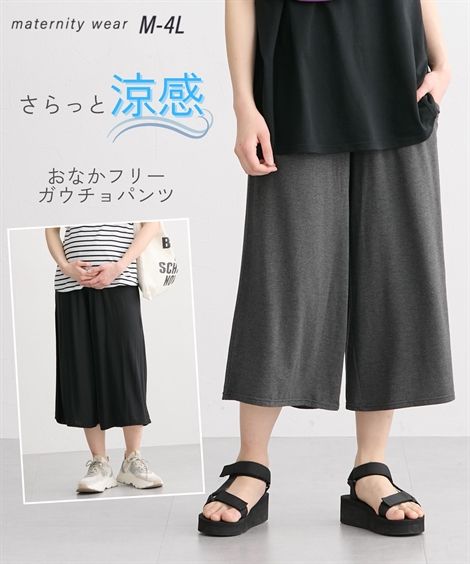【コメント】さらっとした涼感素材で着心地ラクちんのマタニティガウチョパンツです