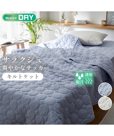 【コメント】夏の寝苦しさを吹き飛ばす!ニッセンの【サラクシュ】サッカー敷きパッドで、サラサラ快適な睡眠を。 表面は凸凹のあるサッカー生地を使用。肌との接触面積が少なく、汗をかいてもベタつきにくいのが特徴です。吸汗速乾性に優れているので、寝汗を素早く吸収・発散し、サラサラの肌触りをキープします。●種類【キルトケット】キルトケットは、キルティング加工が施された薄手の掛け布団です。生地の間には中綿が入っており、肌掛け布団よりも軽く、タオルケットよりも厚みのある寝具です。春〜夏にかけてだけ