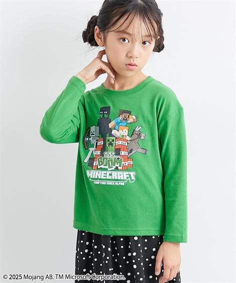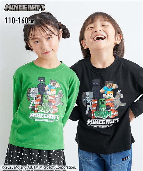 コメントマインクラフトの世界で冒険へ出発! 人気キャラクターたちが大集合した、ワクワクが詰まった長袖Tシャツです! ■デザイン ・マインクラフトの代表的なキャラクターたちがぎっしり詰まった、賑やかでインパクトのあるプリントデザインです。 ・マインクラフトならではのピクセルアート(ブロック調のドット絵)でキャラクターや背景が描かれており、ゲームの世界観をリアルに表現しています。 ・合わせやすいブラックと、ゲームのイメージカラーでもある鮮やかなグリーンをご用意。どちらのカラーも、フロントのプリントデザインをより一層引き立て、コーディネートの主役になること間違いなしです。 ■素材 ・季節の変わり目も快適に過ごせる、さらりとした肌触りの天竺素材を使用。 ■おすすめのスタイリング ・ ボーイズライクなカーゴパンツや、ストリート感のあるデニムパンツ、または動きやすいストレッチパンツと合わせて、元気いっぱいの普段使いスタイルに。 ・兄弟姉妹で色違いで着たり、友達とお揃いで着れば、さらに可愛さ&かっこよさアップ! ・無地のパーカーやスウェットのインナーとして着て、プリントをちらっと見せるのもおしゃれです。 柔らかく肌触りの良い素材で、お子様の肌にも優しく、おうちでのリラックスタイムにもぴったりです。