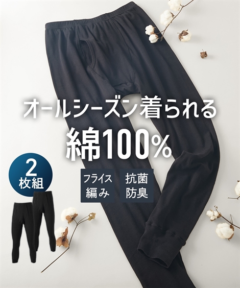 メンズ 抗菌防臭 加工 綿100% フライス 前開き レギンス 2枚組 ズボン下 タイツ 春 夏 秋 冬 大きいサイズ インナー 男性 肌着 | 3L〜10L | ニッセン nissen