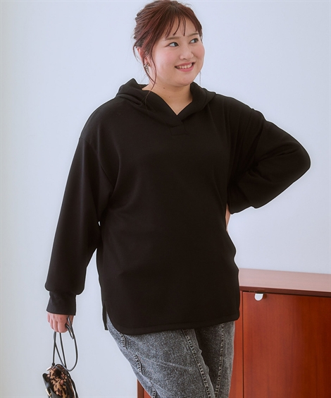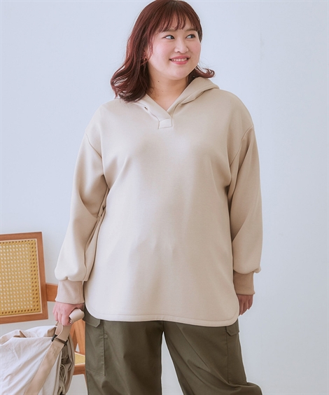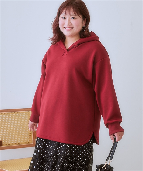 コメント着るだけで旬顔、なめらかダンボールニットパーカー。気になる体型もふんわりカバーして、自信あふれる私へアップデート。トレンド感と着心地の良さを両立した、”It”なアイテムで、新しい自分に出会いませんか■デザインゆったりシルエットで体型カバーも叶う、大人のためのリラックスパーカー。カジュアルになりすぎない、こだわりのネックデザインがポイント。顔周りをすっきりと見せてくれるネックラインと、程よいボリューム感のフードが、こなれた印象を演出します。シンプルながらも、計算されたシルエットで、どんなボトムスとも相性抜群。カジュアルからきれいめまで、幅広いスタイリングを楽しめます。■素材なめらかで上品な光沢感が魅力のダンボールニット素材を使用。ふっくらとした肉厚感がありながらも、軽くて着心地が良いのが特徴です。ポリエステルをメインに、レーヨンをブレンドすることで、しっとりとした肌触りを実現。さらに、ポリウレタンを混紡することで、ストレッチ性もプラスしました。動きやすく、ストレスフリーな着心地で、デイリーユースに最適です。■おすすめのスタイリングカジュアルに着こなすなら、ドット柄のフレアスカートと合わせて、大人可愛いスタイリングに。足元は、スニーカーで抜け感を出すのがおすすめです。きれいめに着こなすなら、テーパードパンツと合わせて、オフィススタイルにも。アクセサリーは、華奢なネックレスやピアスをプラスして、上品さを演出しましょう。足元は、パンプスやローファーで、きちんと感をプラスするのがおすすめです。