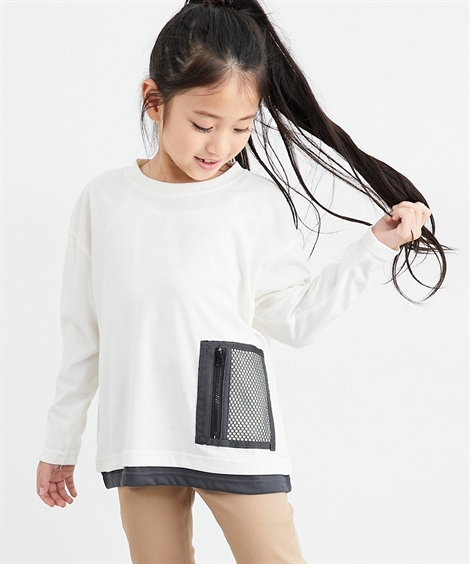 コメント防汚加工 ポケット付きTシャツ(男の子・女の子)は、元気いっぱいのキッズにぴったりのアイテム!110cmから160cmまで幅広いサイズ展開で、兄弟姉妹でお揃いコーデも楽しめます。■デザイン・メッシュポケットがアクセント!小物を入れるのに便利で、デザイン性も兼ね備えています。・ゆったりとしたシルエットで動きやすく、レイヤードスタイルも楽しめます。ベーシックなカラー展開で、どんなボトムスとも合わせやすい着回し力抜群のTシャツです。■素材・水溶性汚れがご家庭洗濯の際に落ちやすい加工が施されています。■おすすめのスタイリング・ デニムパンツと合わせてカジュアルに!足元はスニーカーでアクティブな印象に。・お天気の日はハーフパンツと合わせて涼しげコーデ。キャップをプラスしてストリート感を演出。・女の子はスカートと合わせて甘辛ミックスコーデも可愛い!レギンスを重ねて動きやすさも