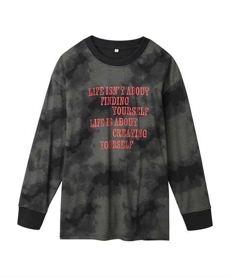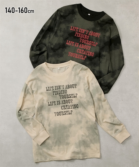 コメントおしゃれキッズにぴったり!ビッグシルエットでトレンド感満載のタイダイプリント長袖Tシャツ。一枚で主役級のデザインと、ポジティブなメッセージが、毎日のコーデを楽しく彩ります。男の子も女の子も着られるユニセックスデザインです。■デザイン・ 独特のタイダイ柄は、まるで一点物のような表情。 シンプルなボトムスと合わせるだけで、周りと差がつくおしゃれな着こなしが完成します。・ポジティブなメッセージが、コーディネートのアクセントに。・落ち着いた色展開で、どんなボトムスにも合わせやすいのが嬉しいポイント。・ ゆったりとしたビッグシルエットは、動きやすくてリラックスした着心地。 アクティブなお子様も快適に過ごせます。■素材・さらりとした肌触りの綿100%天竺素材を使用。■おすすめのスタイリング・ デニムパンツやカーゴパンツに合わせ、ストリート感のある着こなしに。・ スウェットパンツやレギンスと合わせて、アクティブで楽ちんなカジュアルスタイルに。・シャツやアウターのインナーとして、タイダイ柄とメッセージをチラ見せさせるレイヤードスタイルに。