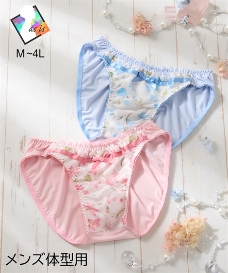 可愛いショーツを実際に履いてみたい、そんな願いをかなえるショーツです。ダーツを入れることでより男性体型にあいやすい立体的な形に。フロントのリボンテープとちらっと見えるレースがかわいい小花プリントのショーツです!