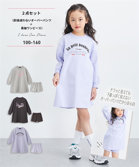 ワンピース 子供服 キッズ 2点セット 前後迷わないオーバー パンツ + 長袖 女の子 春 秋 ガールズ | 身長140/150/160cm | ニッセン nissen