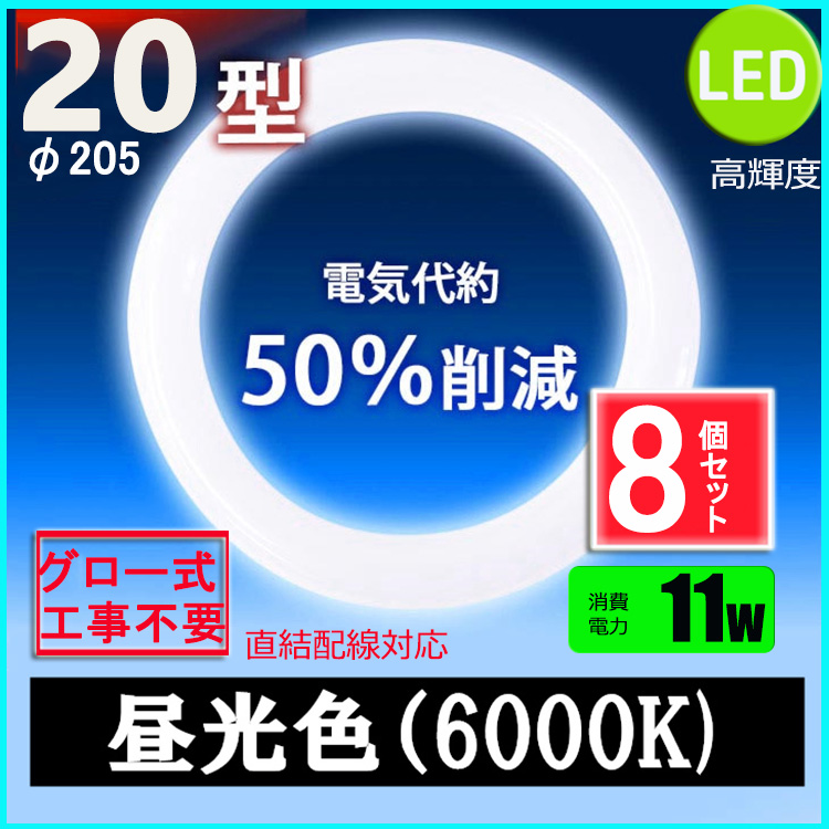 led蛍光灯丸型20w形 昼光色 LEDランプ丸形20W型 LED蛍光灯円形型 FCL20W代替 高輝度 グロー式工事不要 8個セット