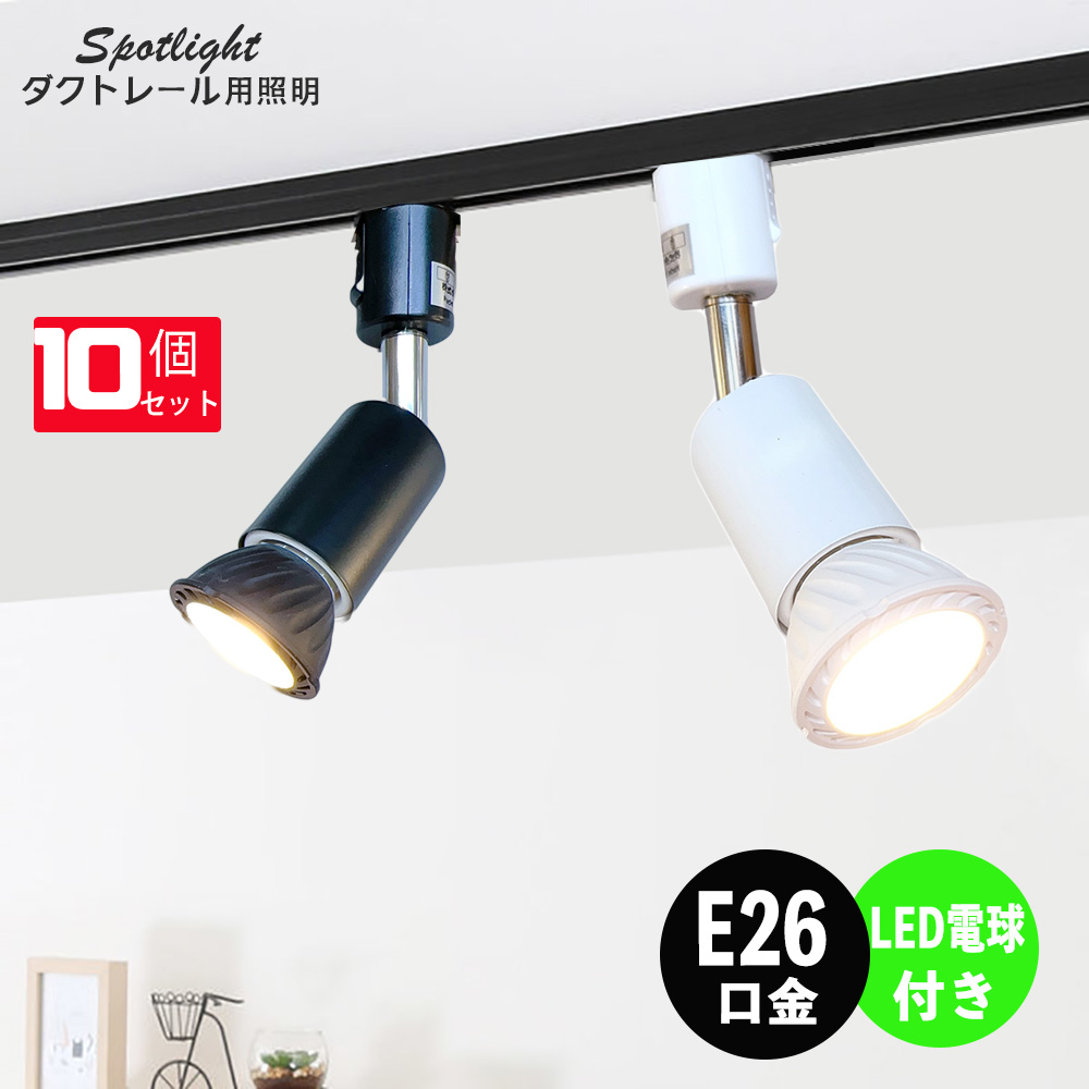 ダクトレール用スポットライト器具 E26 LED電球付き 60W相当 ホワイト 配線ダクトレール用 レールライト スポットライト用器具 ライト レールライト10個セット