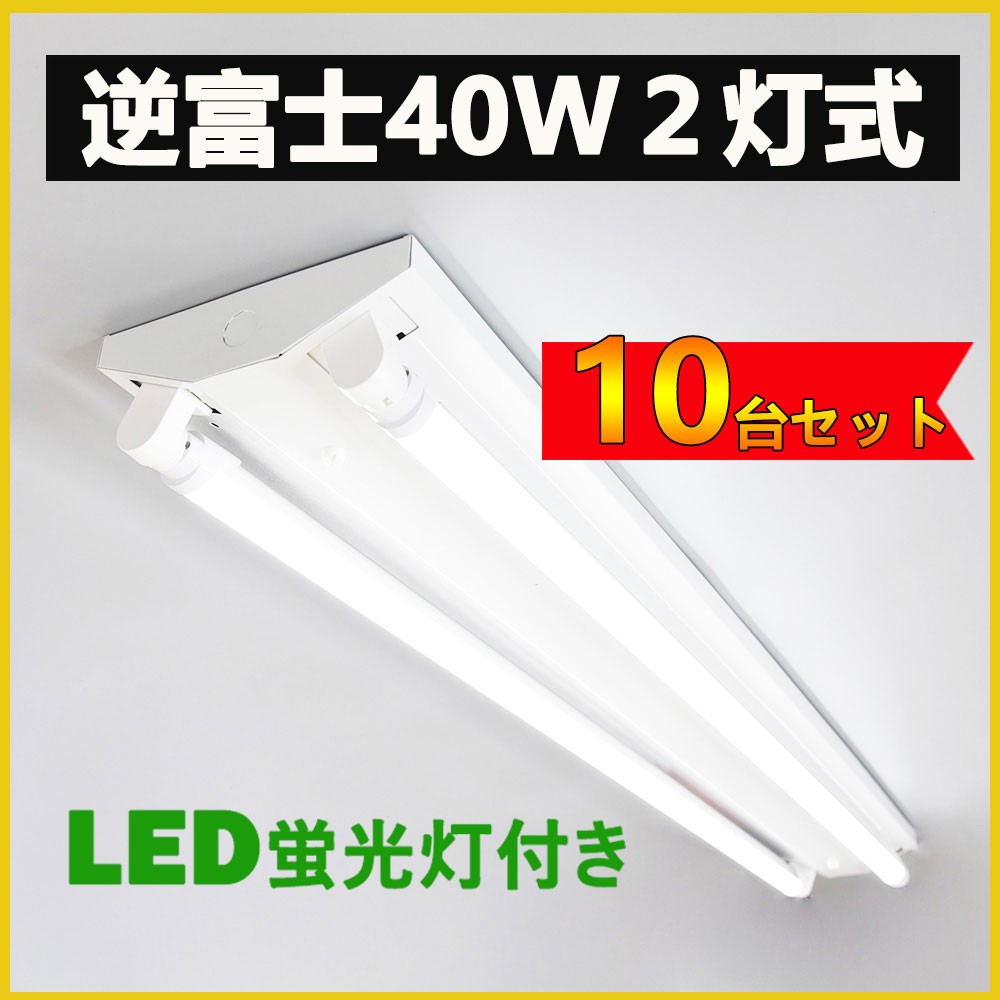 led蛍光灯器具 逆富士40w2灯 逆富士型led照明器具 直管LED蛍光灯用照明器具 逆富士型 40W型2灯 LEDベースライト LED照明器具 LED蛍光灯ランプ付き 10台セット