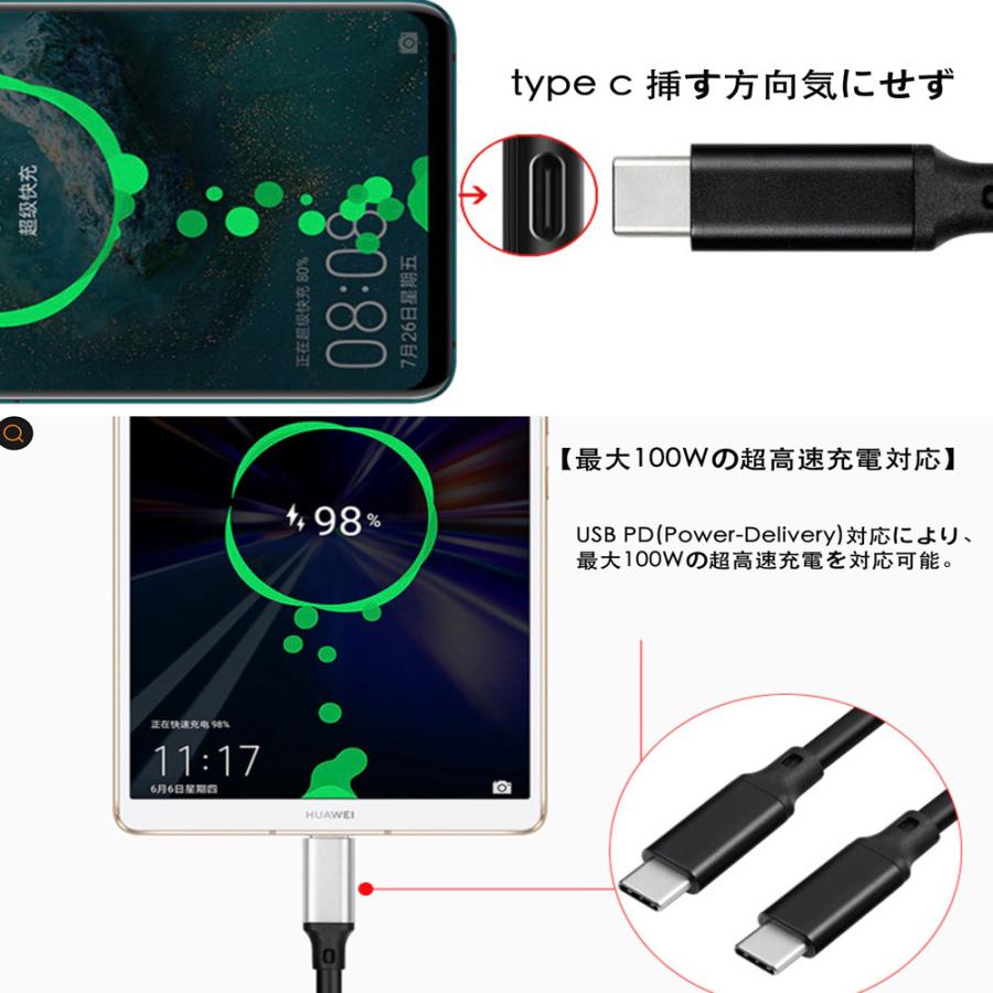 USB Type CケーブルPD対応100W/5A 超急速充電 4K/60Hz 映像出力対応 USB C to USB C 断線防止 MacBook Pro、iPad等Type-c機種対応 2M