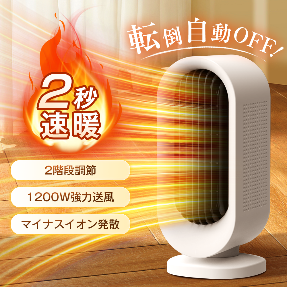 転倒自動OFF:不意の衝撃や地震などでヒーターが倒れても自動で電源が切れるので、ベービーやペットがいる家庭でも安心にご使用頂けます。