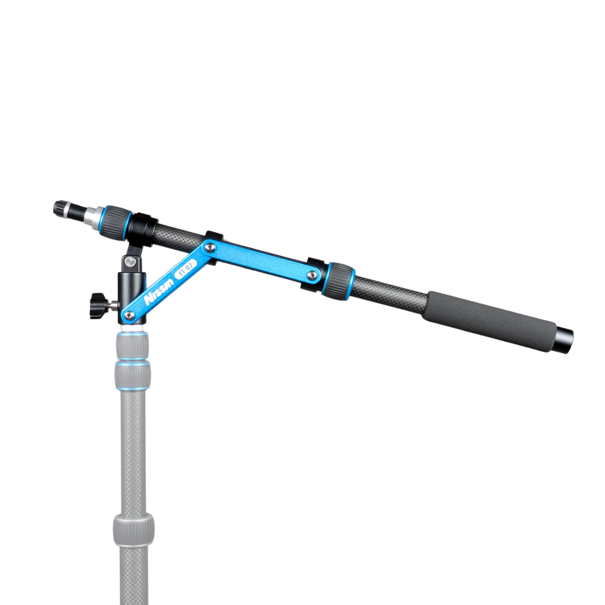フリーチルター FT-02は、グリップハンドルを使って照明機材の上下角度や左右の振りを自由に調節できます。カーボンファイバー製ポールを採用し、約290gと軽量。素早くセットアップでき、撮影の効率が大幅に向上します。特に、手の届かない高所に設置した照明機材の調整に便利です。