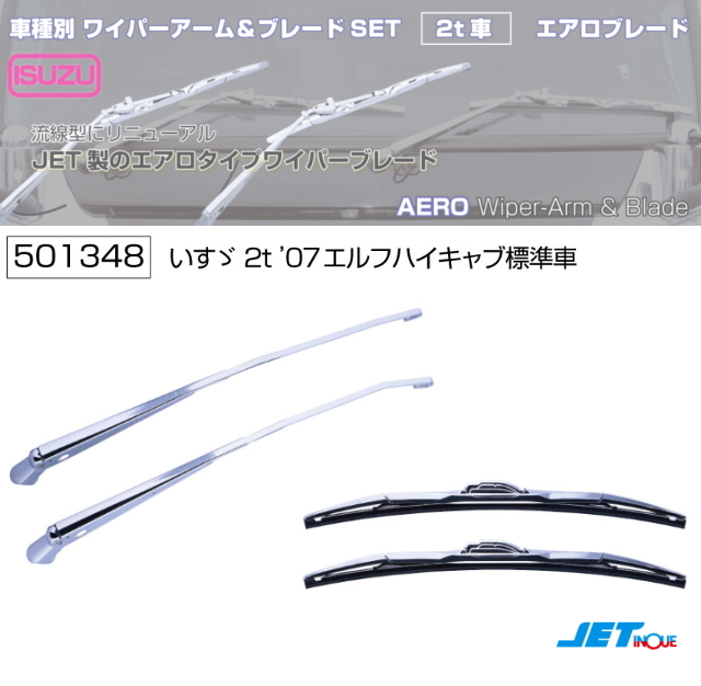 ワイパーアーム&ブレードセット エアロタイプ いすゞ07エルフハイキャブ標準車用(H19.1〜) 安心のJETイノウエ製