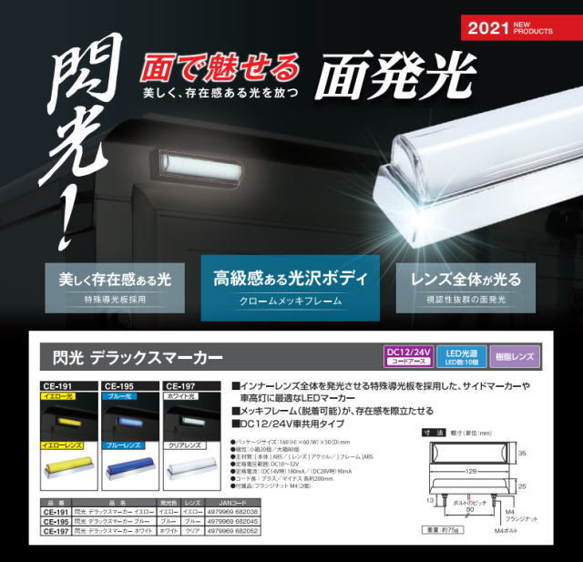 閃光デラックスマーカー 12V/24V共用 クロームメッキ枠付
