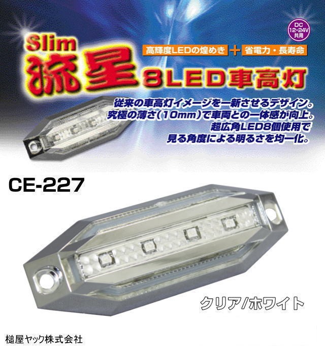 slim流星8LED車高灯 クリア/ホワイト 12/24V共用