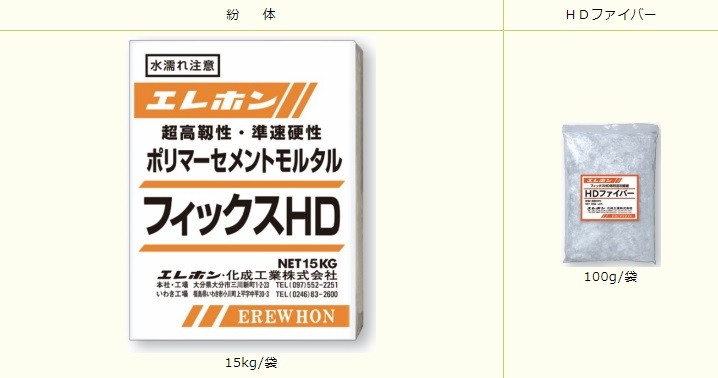 プレミックスポリマーセメントモルタルであり、紛体と高強力ポリエチレン繊維と水を混練し、施工できます。