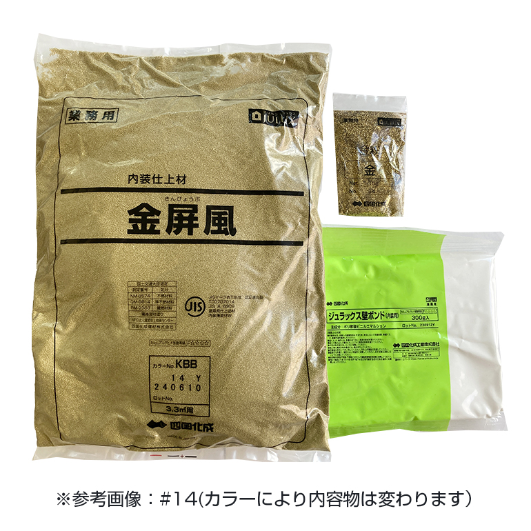 13〜18:基材4,315g/袋(金粉15g含む)、合成樹脂エマルション300g/袋