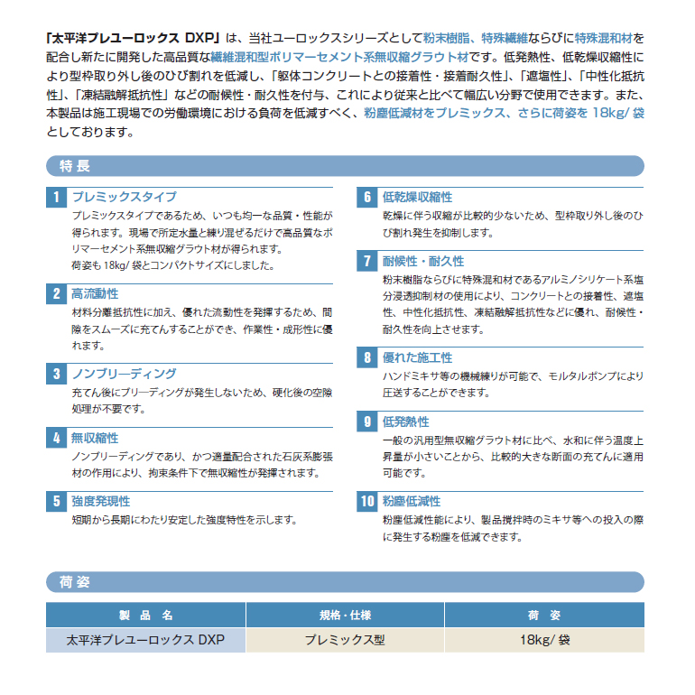 太平洋プレユーロックスDXP 18kg/袋 太平洋マテリアル ※受注生産品