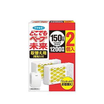 フマキラー どこでもベープ 未来 150日 取替え用 2個入(電池入り) x1個(定形外郵便送料450円:コンビニ受け取り代引別途送料)450円)