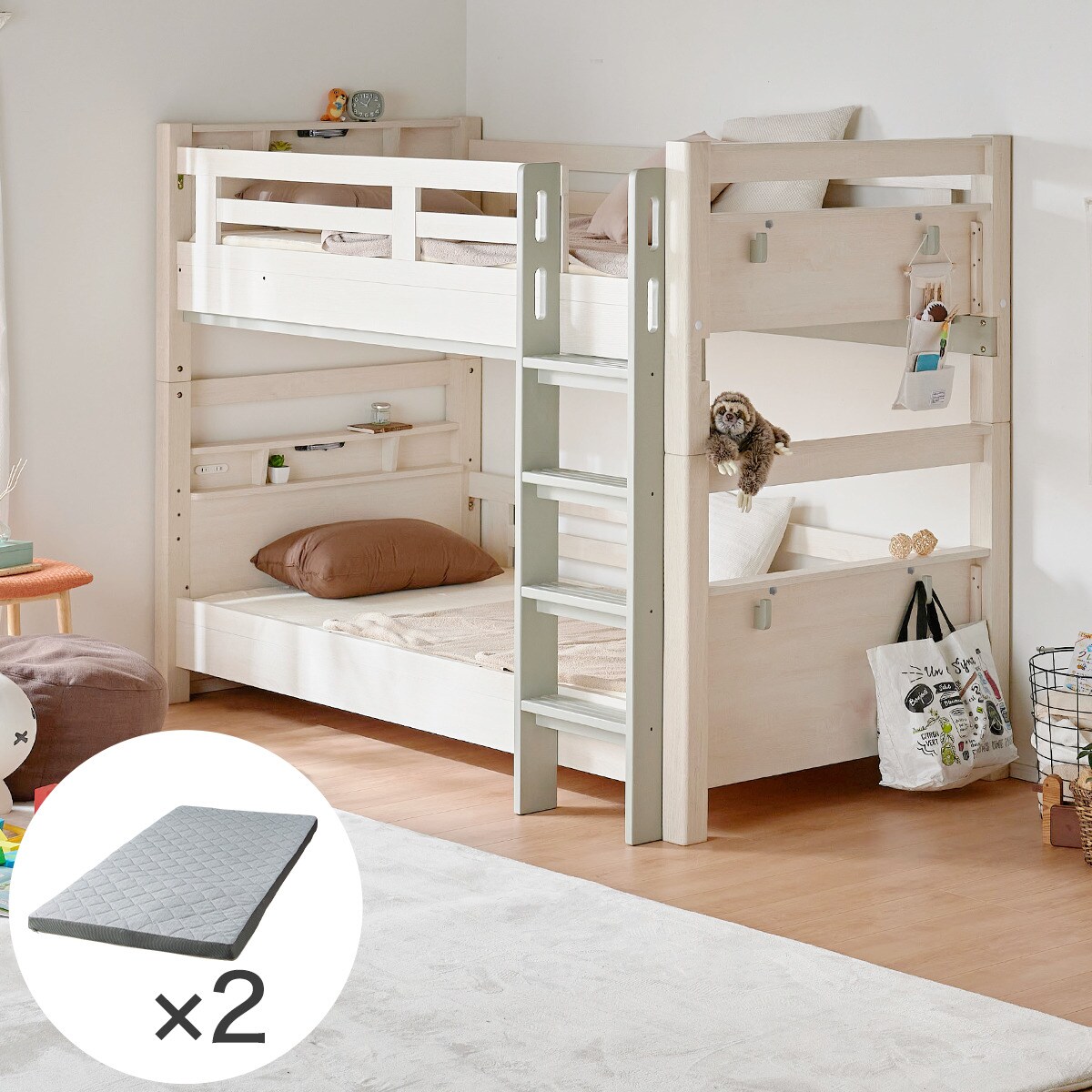 付属のマットレスは、通気性・クッション性に優れた、2段ベッド・システムベッド対応の薄型ノンコイルマットレスです。