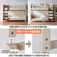 ●下段の床板の高さを3段階調整可能。小さなお子様に合わせてベッド高を低くしたり、ベッド下を収納に使いたい時にはベッド高を高くするなどお好みに設定出来ます。