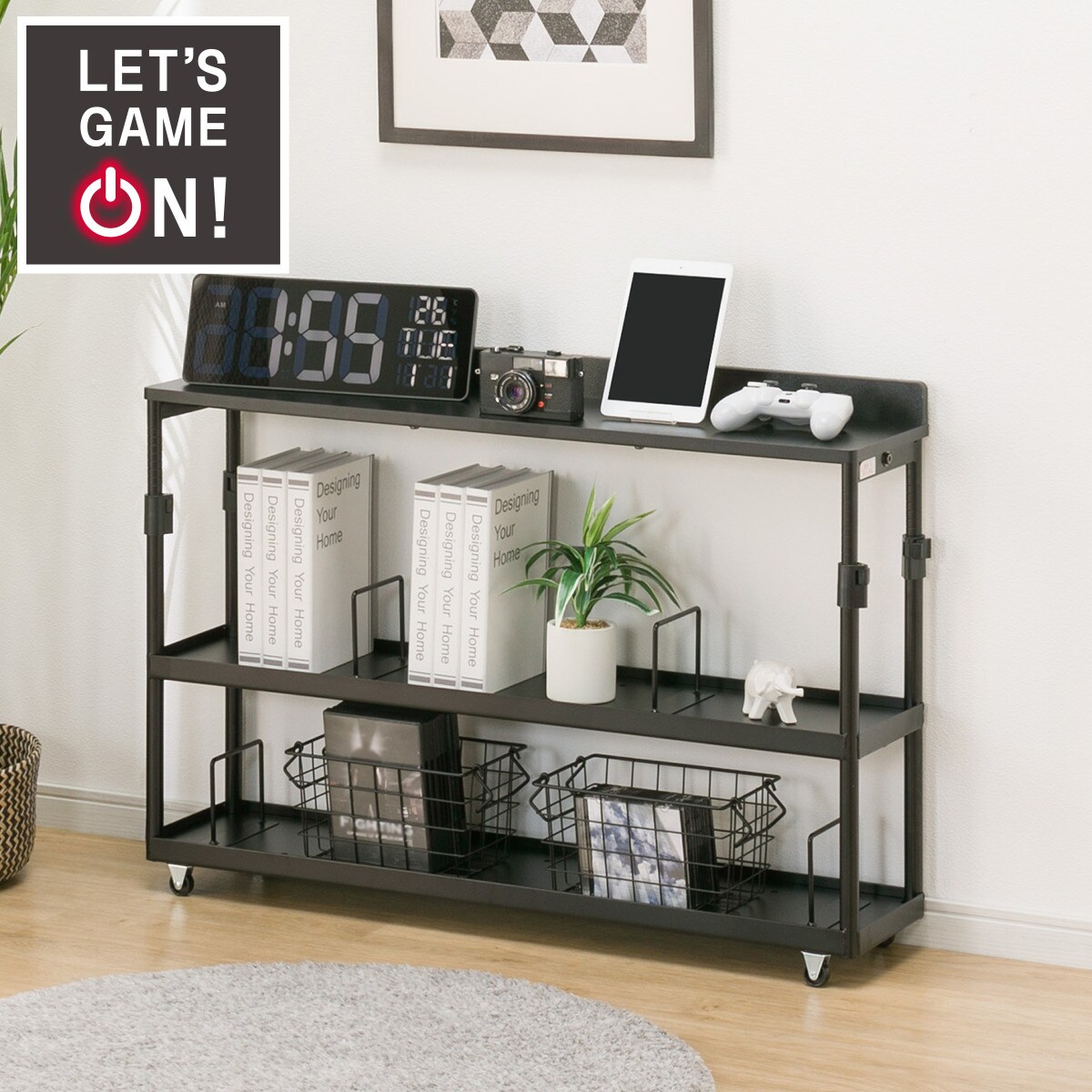 棚部分に仕切りが付いているので、本や雑誌などの収納にも便利です。